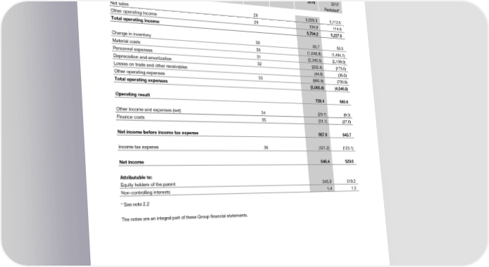 Group Financial Statements CONSOLIDATED INCOME STATEMENT in CHF million Note 2018 2017 Restated* Net sales 29 5,659.3 5,112.6 Other operating income 29 134.9 114.9 Total operating income 5,794.2 5,227.5 Change in inventory 30 56.7 50.5 Material costs 30 (1,648.9) (1,484.1) Personnel expenses 31 (2,340.5) (2,109.9) Depreciation and amortization 32 (202.4) (173.5) Losses on trade and other receivables (44.8) (36.0) Other operating expenses 33 (885.9) (793.9) Total operating expenses (5,065.8) (4,546.9) Operating result 728.4 680.6 Other income and expenses (net) 34 (29.7) (9.3) Finance costs 35 (31.1) (27.6) Net income before income tax expense 667.6 643.7 Income tax expense 36 (121.2) (123.1) Net income 546.4 520.6 Attributable to: Equity holders of the parent 545.0 519.3 Non-controlling interests 1.4 1.3 * See note 2.2 The notes are an integral part of these Group financial statements. 2018 Financial Report | 12