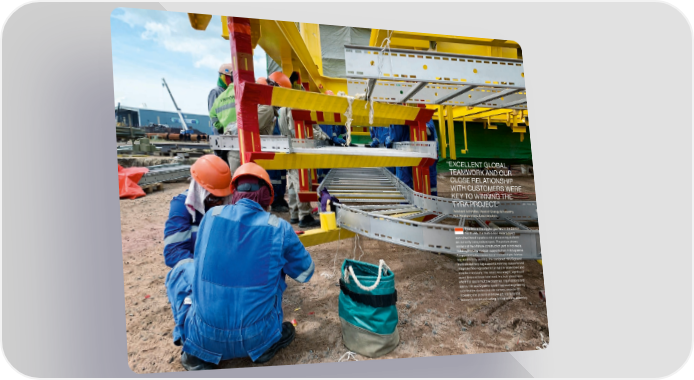“ EXCELLENT GLOBAL TEAMWORK AND OUR CLOSE RELATIONSHIP WITH CUSTOMERS WERE KEY TO WINNING THE TYRA PROJECT.” Reinhard Schindler, Head of Energy & Industry, Hilti Headquarters, Liechtenstein Tyra 昀椀 eld is the biggest gas 昀椀 eld in the Danish North Sea. In a multi-billion dollar project, several wellhead topsides and a processing platform are currently being redeveloped. The picture shows workers at the offshore construction yard in Indonesia, installing Mekano modular supports from Hilti/Oglaend. As opposed to the conventional method of pre-fabrica- ting supports by welding, the combined Hilti/Oglaend multi-disciplinary tray supports, non-tray supports and integrated 昀氀 ooring systems can be pre-assembled and mounted modularly. The result: less weight, signi昀椀 cant saved time and lower total cost. In a truly global team effort that spans multiple countries, organizations and teams, Hilti and Oglaend System conduct engineering optimization studies and site surveys, assist in 3D modeling and provide extensive job site technical support in aspects of cutting, kitting and pre-assembly. 52–53