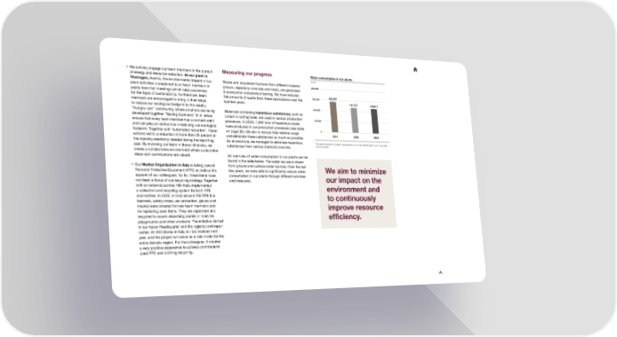 • We actively engage our team members in the pursuit Measuring our progress Water consumption in our plants of energy and resource reduction. At our plant in in m3 Thüringen, Austria, the environmental impact of our Waste and recyclable fractions from different material 200,000 plant activities is explained to all team members in groups, especially concrete and metal, are generated yearly town hall meetings which raise awareness in production and product testing. We have reduced 150,000 142,287 for the topic of sustainability. Furthermore, team the amounts of waste from these applications over the 117,277 115,971 members are encouraged to bring in their ideas last few years. to reduce our ecological footprint to the weekly 100,000 “Hungry Lion” community, where solutions are being Materials containing hazardous substances, such as developed together. “Saving Sponsors” in all areas cobalt in cutting tools, are used in various production 50,000 ensure that every team member has a contact point processes. In 2023, 1,390 tons of hazardous waste and can play an active role in reducing our ecological were produced in our production processes (see table 0 footprint. Together with “automated reduction”, these on page 30). We aim to reduce their relative usage 2021 2022 2023 actions led to a reduction of more than 25 percent in and eliminate these substances as much as possible. the standby electricity needed during the reporting As an example, we managed to eliminate hazardous The data includes the water consumption in our own plants and in all of our joint year. By involving our team in these initiatives, we substances from various diamond core bits. venture plants. create a collaborative environment where sustainable ideas and contributions are valued. An overview of water consumption in our plants can be found in the table below. The water we use is drawn • Our Market Organization in Italy is taking care of from ground and surface water sources. Over the last Personal Protective Equipment (PPE) as well as the few years, we were able to signi昀椀cantly reduce water We aim to minimize apparel of our colleagues. So far, these items have consumption in our plants through different activities not been a focus of our recycling strategy. Together and measures. our impact on the with an external partner, Hilti Italia implemented environment and a collection and recycling system for both PPE and clothes. In 2022, in total around 700 PPE kits to continuously (helmets, safety shoes, ear protection, gloves and masks) were ordered for new team members and improve resource for replacing used items. They are separated and recycled to sound-absorbing panels or mats for playgrounds and other products. The initiative started ef昀椀ciency. in our Italian Headquarter and the logistics and repair center. All Hilti Stores in Italy will be involved next year, and the project will serve as a role model for the entire Adriatic region. For the colleagues, it creates a very positive experience to actively contribute to used PPE and clothing recycling.