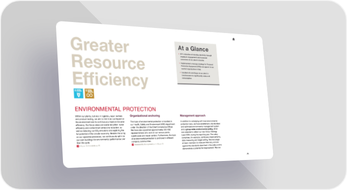 At a Glance Greater • 25% reduction of standby electricity through employee engagement and increased awareness in our plant in Austria • Implemented a reusage strategy for Personal Protective Equipment (PPE) and apparel in our Resource market organization in Italy • Installed oil centrifuges in our plant in Liechtenstein to signi昀椀cantly reduce oil consumption Ef昀椀ciency ENVIRONMENTAL PROTECTION Within our plants, but also in logistics, repair centers Organizational anchoring Management approach and product testing, we aim to minimize our impact on the environment and to continuously improve resource The topic of environmental protection is handled in In addition to complying with local environmental ef昀椀ciency. Our focus areas are waste reduction, water our Health, Safety and Environment (HSE) department protection laws, we have established a standardized ef昀椀ciency and contaminant emissions reduction, as under the direction of the Chief Compliance Of昀椀cer. and optimized environmental management system well as reducing our CO22 emissions and exploring the We have also appointed approximately 200 HSE and a group-wide environmental policy, which full potential of the circular economy. Besides focusing representatives who work in our various plants, was adapted to re昀氀ect our new Group Strategy on our operative processes, we continuously optimize warehouses and repair centers. Furthermore, the topic Lead 2030, during the reporting year. The policy our own buildings for environmental performance over of environmental protection is anchored in different comprises, for example, continuous improvements, their life cycle. company communities. data measuring and target setting. We encourage CO : p. 13; Circularity: p. 20 Sustainability Management: p. 4; CO : p. 13 all team members to measure their daily actions 22 22 against the standards described in the policy and to demonstrate a potential for improvement. We also